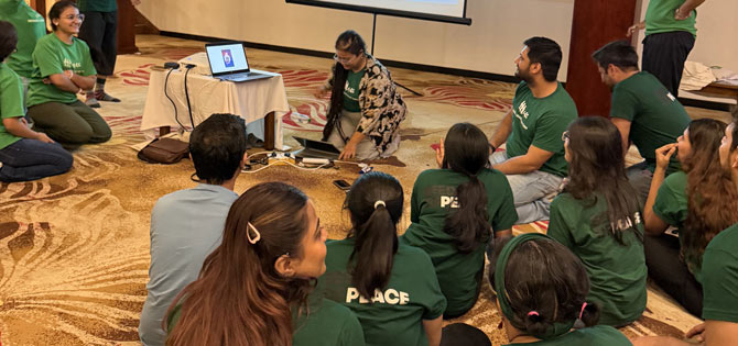 In henna with Falak, campers tested their skills on one another’s hands, some experimenting with basic Arabic and Devanagari scripts to write names alongside their designs. Volleyball with Ali proved especially popular, with a full-fledged match unfolding within the span of an hour. Traditional games with Yusra concluded on a playful note with a crowd favourite: musical chairs. With Gale, Paul, Shweta, and Laila joining in, the game ended triumphantly with a large fallen coconut presented as the winner’s trophy.
