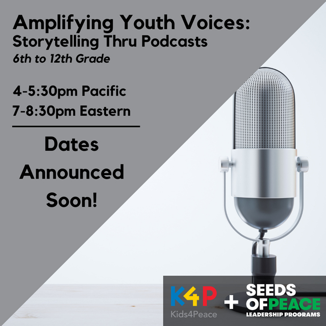 We know how powerful it can be when youth voices are lifted and amplified. In this short program, participants will learn the skills of telling your own story and translating it into digital media that can be shared far and wide. We will be joined by Seeds of Peace GATHER Fellow and New York City educator Molly Josephs, who runs a podcast with youth called This Teenage Life. At the end of the four sessions, participants will have composed and recorded their own dialogue/conversations on a topic of their choosing, which will be edited into a special Seeds of Peace episode of the This Teenage Life podcast.